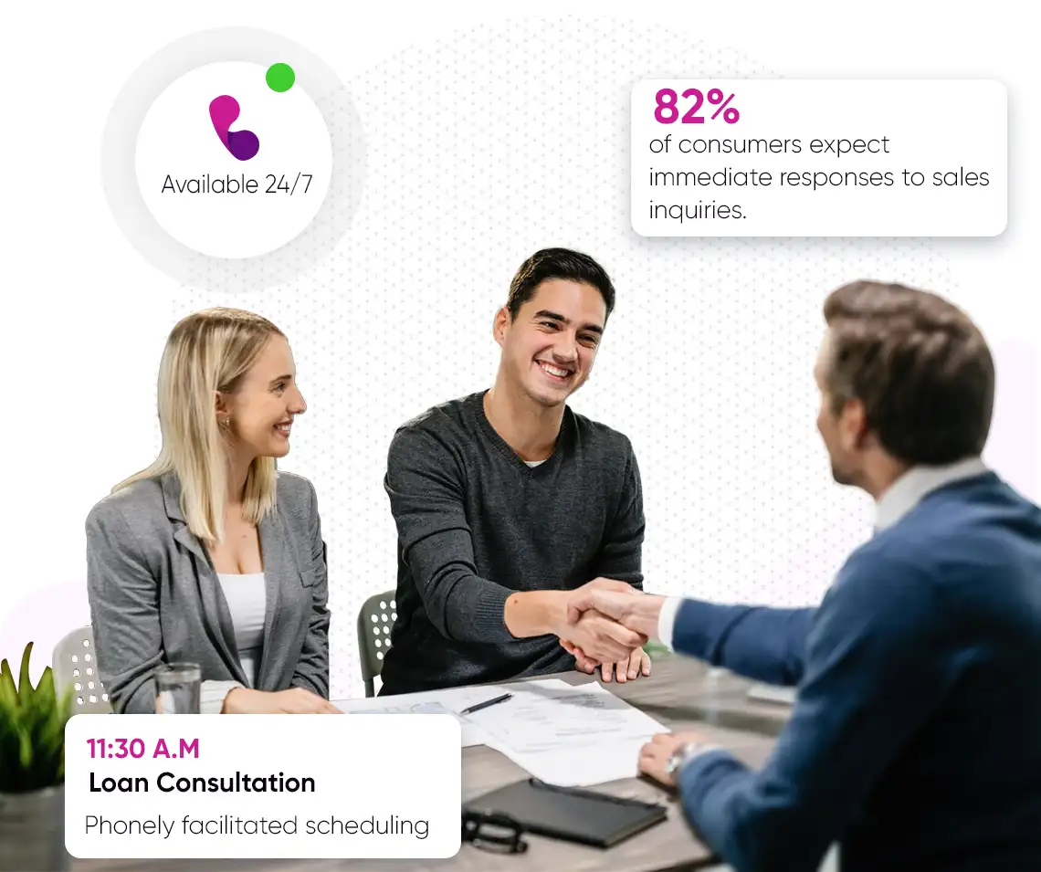 In the competitive mortgage industry, Phonely’s AI-driven phone service provides a crucial edge. Our AI receptionist offers 24/7 availability at a fraction of the cost of human staff. Spend less time on calls, convert more leads to clients, integrate with your tools, and gain actionable insights—all seamlessly with Phonely.