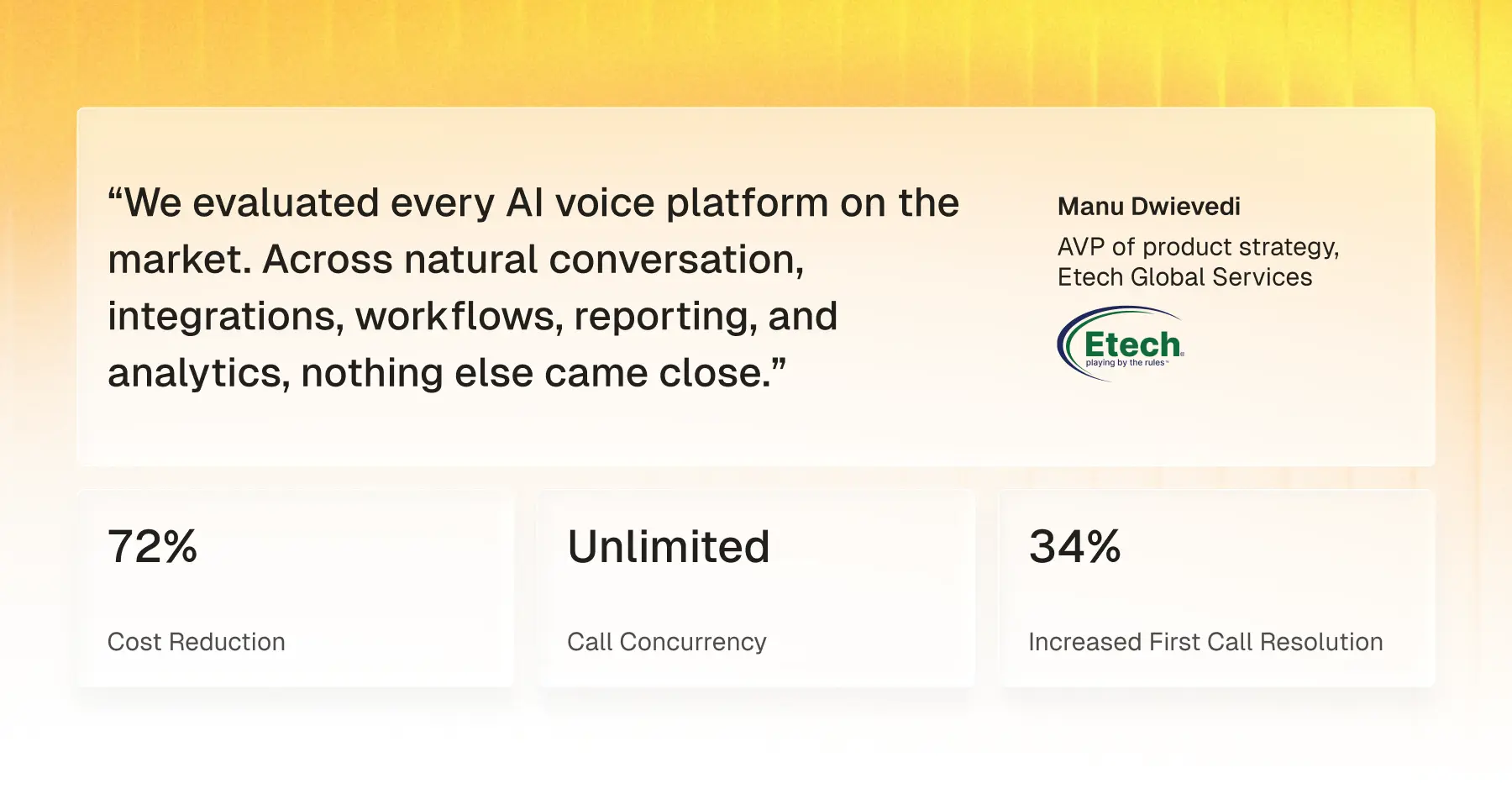 - Voice AI replaces rigid IVR menus with intelligent, context-aware conversations that resolve issues on the first call. Phonely customers like Etech have reported a 34% increase in first-call resolution after deployment.