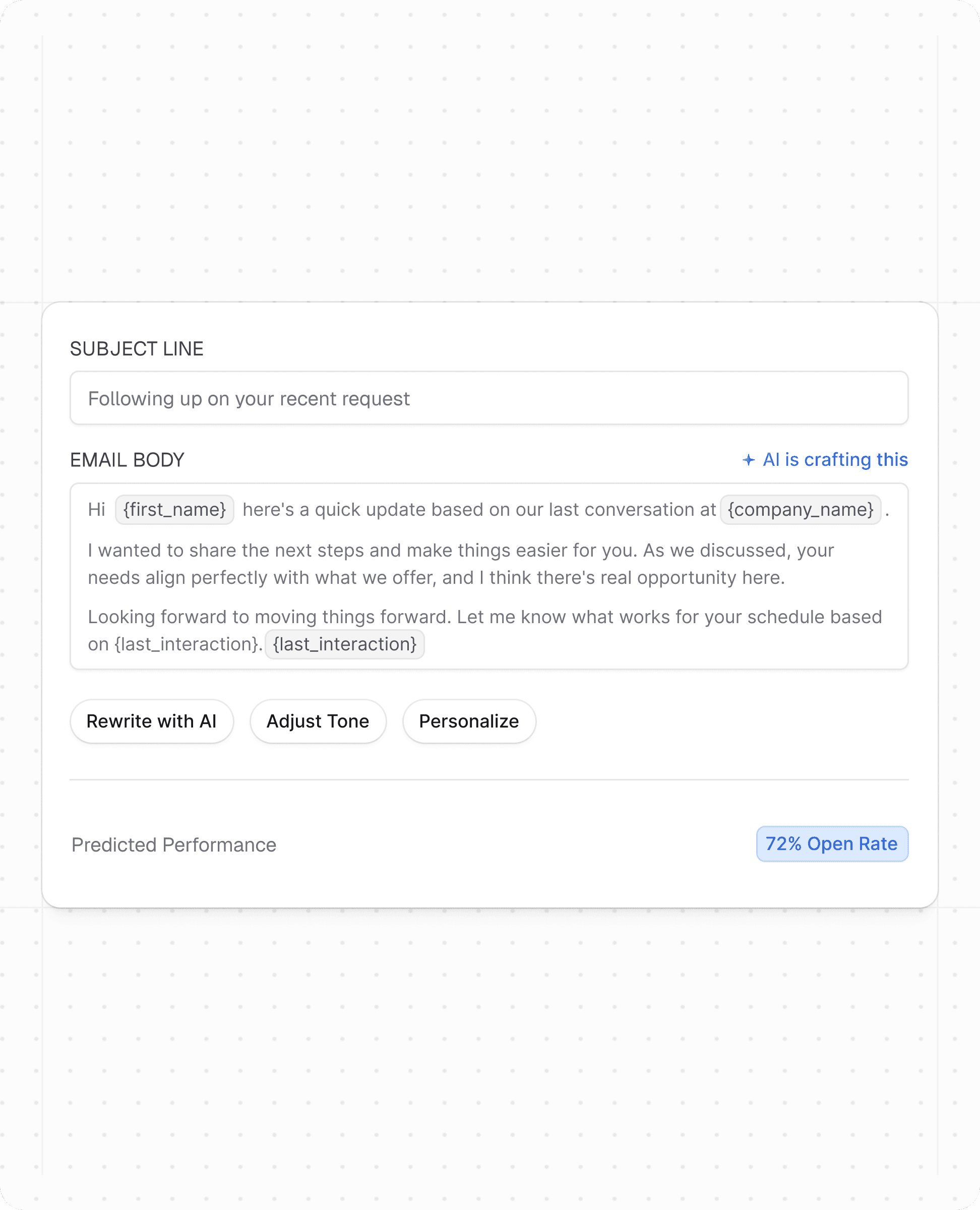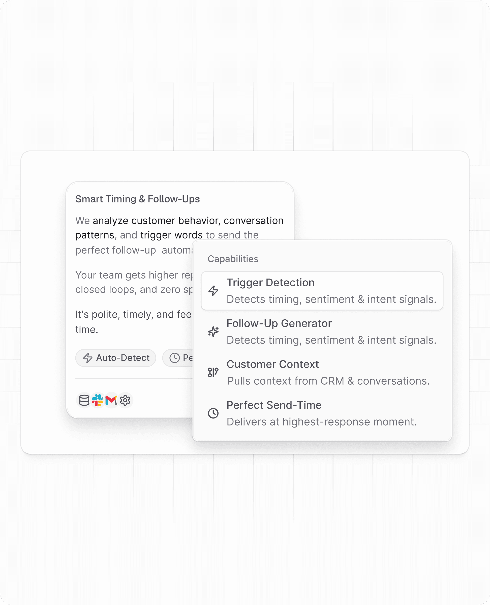 We analyze customer data and trigger words to automate polite follow-ups, and keep your brand top-of-mind. Say yes to higher reply rates and zero spammy vibes.