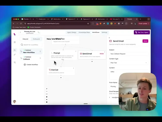Phonely lets you send tailored emails that feel personal. This isnโt cookie-cutter automation; itโs smart AI writing that mirrors your brand voice across every cold email campaign.