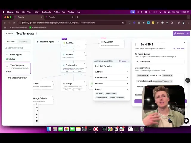 Phonely enables your AI agents to send SMS messages during or right after a live call using full context from the conversation. The result? Instant follow-through. Your AI responds more fluidly and seamlessly transitions from conversation to action. Quote request? Your agent complies immediately. Patient appointment? Instant SMS notification with details.