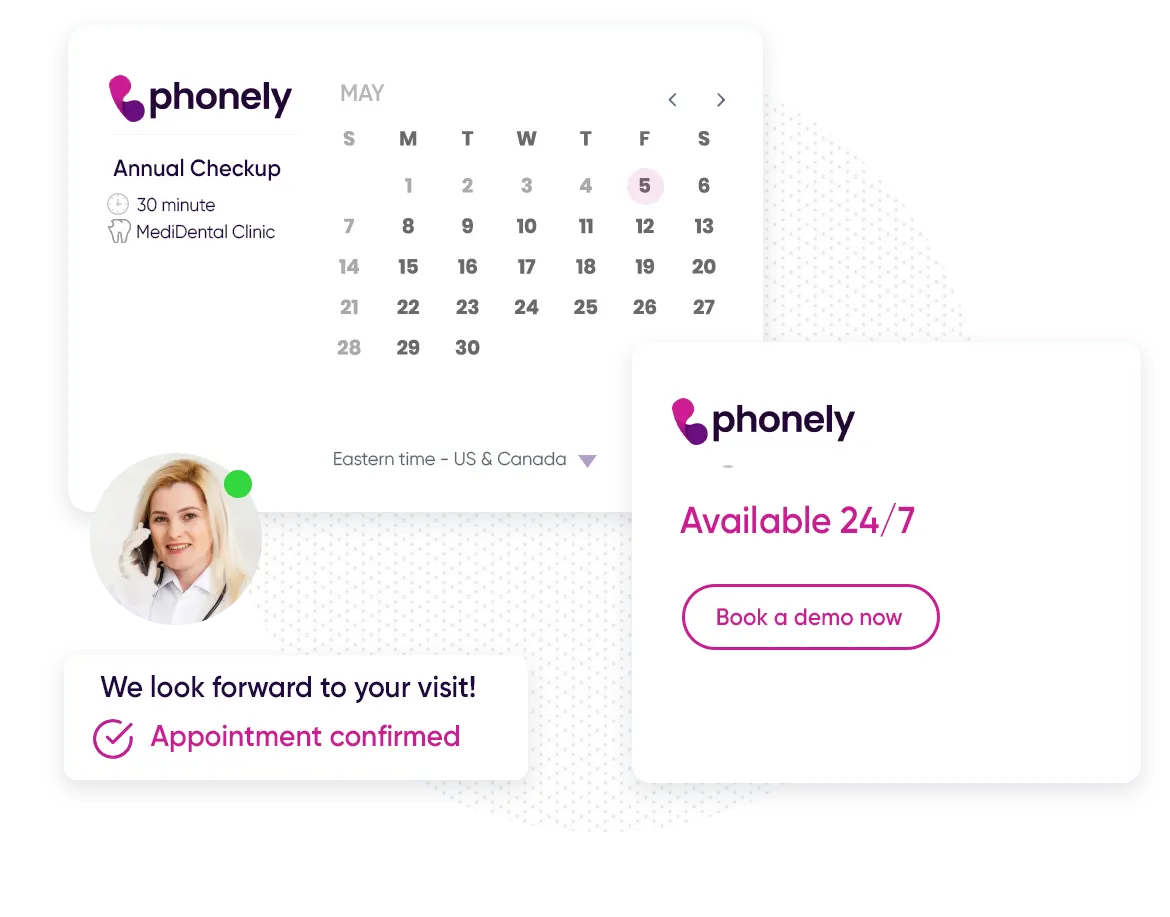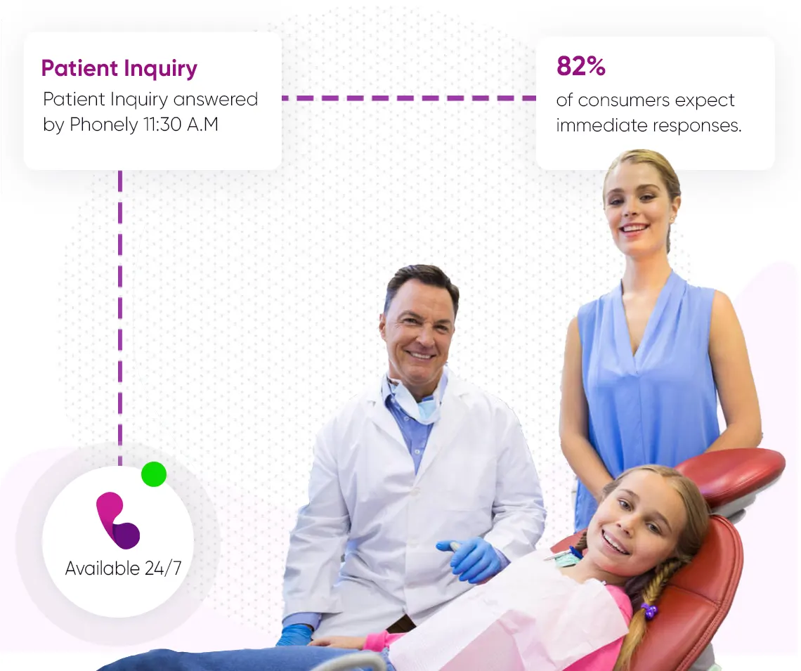 Backed by extensive research and dental industry expertise, Phonely’s AI assistant offers premium service for dentists and orthodontists round-the-clock. Streamline appointment scheduling, expedite your practice’s processes, enhance patient satisfaction, and cultivate superior care for more successful outcomes, all powered by our deep, pre-existing knowledge base on dental practices.