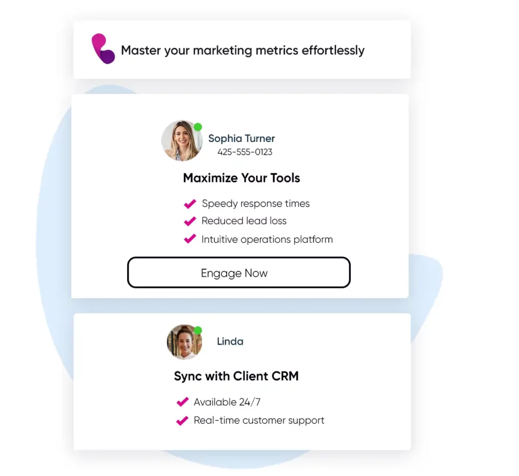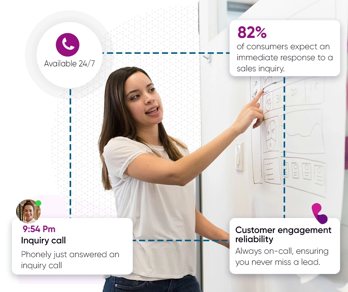 Phonely’s AI receptionist service is customized for marketing firms and designed to elevate customer engagement. Our solution ensures 24/7 availability, blocks SPAM, captures new leads, and integrates smoothly with CRMs, maximizing every customer interaction.