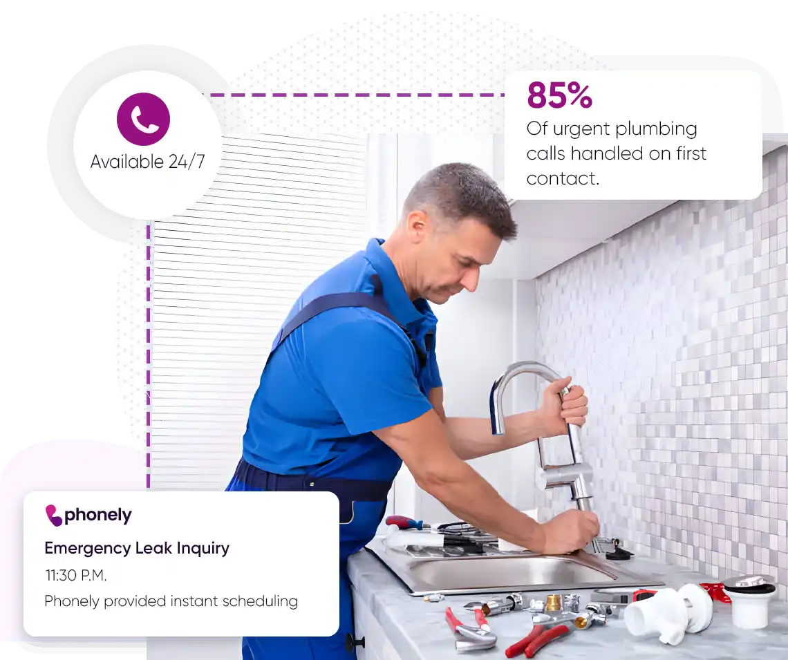 Phonely’s AI-assistant harnesses industry-specific knowledge to cater to the unique needs of plumbing businesses. Ensure your business never misses a call again. Through our innovative AI system you’ll not only boost customer satisfaction, you’ll also capture and convert leads, helping you maximize every business opportunity