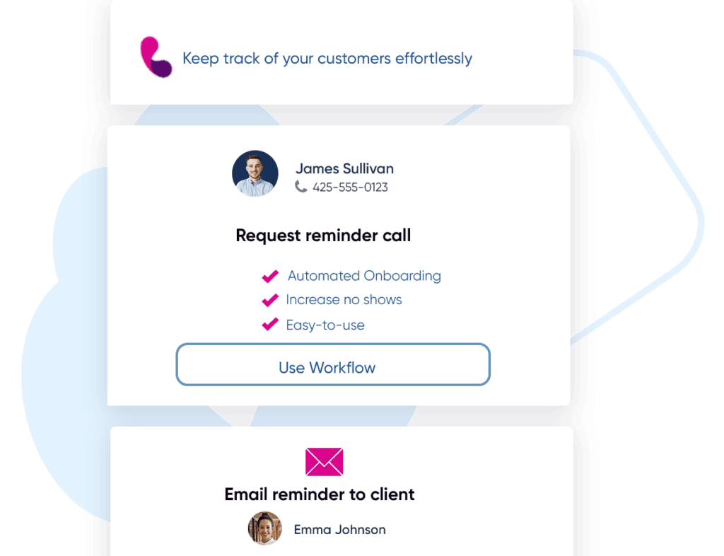 Automate notifications and send timely reminders to reduce no-shows. Automate checkin tasks and questions so your team can spend more time helping customers.