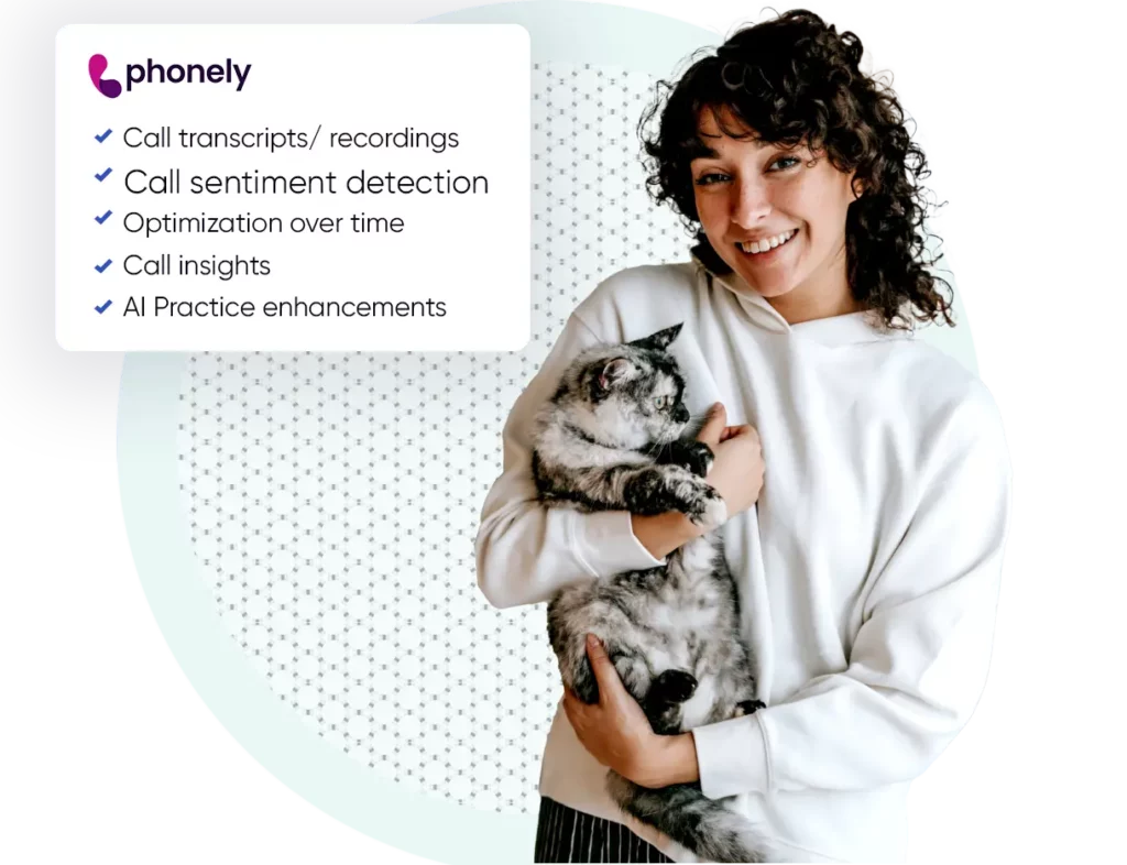 Phonely’s AI phone assistant provides your clients with 24/7 customer support, tailored for your business. Streamline appointment scheduling, expedite your clinic’s processes, improve client satisfaction, and cultivate superior care for more successful outcomes, all informed by our rich, pre-existing knowledge base on veterinary practices.